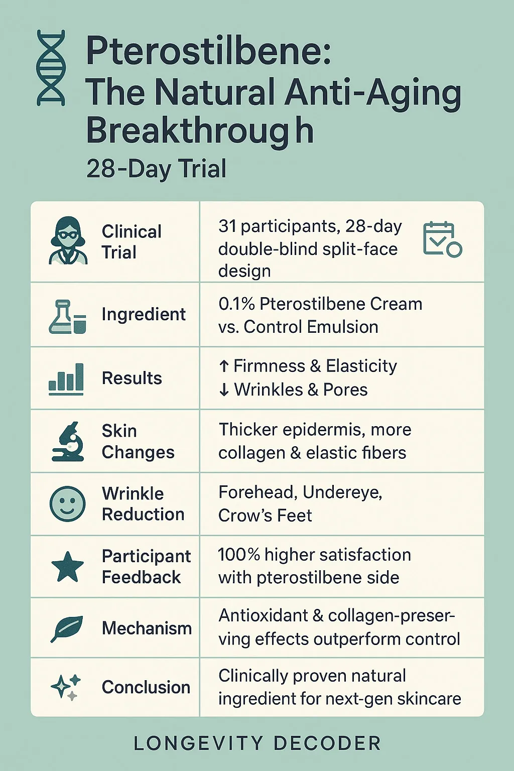 Cen, Z., Chen, Z., Wang, D., Zuo, Y., Chen, J., & Chen, X. (2025). Anti-aging efficacy of a 0.1% pterostilbene skincare emulsion: A 28-day clinical trial. Journal of Dermatologic Science and Cosmetic Technology, 2(2), 100083. DOI:10.1016/j.jdsct.2025.100083